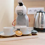 Oltre a servizi per la preparazione di tè/caffè, la strutturadispone di una cucina completamente attrezzata dotata di un microonde, un bollitore elettrico e una vetreria.
